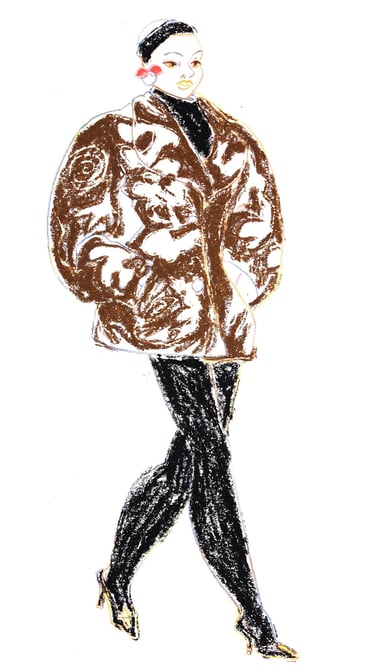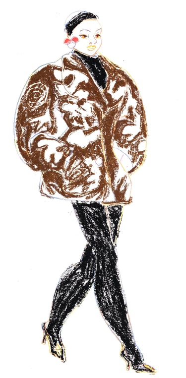 Fashion illustration is at the heart of my artistic journey. I work mostly with colored pencils and pastels to capture movement, style, and emotion in every drawing. I also love to embroider beads and sequins on paper, I'm truly a mixed media artist!
